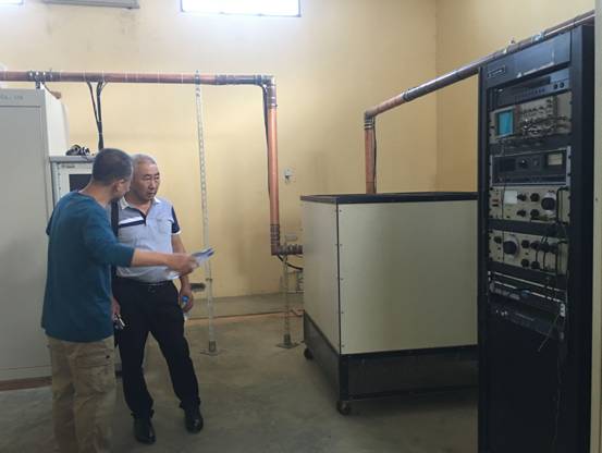 兰哥尼短波广播发射台台长向验收组介绍发射台功能