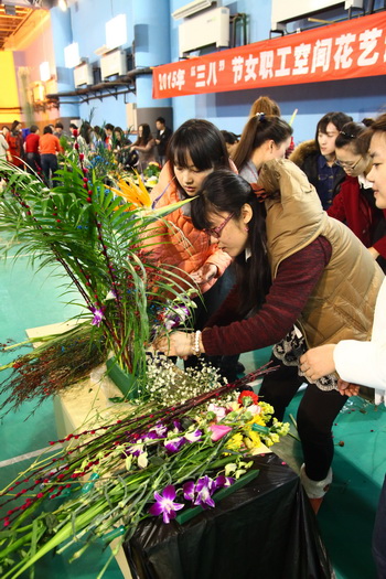 阵阵春意,万物复苏。为迎接“三八”妇女节,3月6日直营总部女工委举办了以《美丽“三八”,梦想家园》为主题的女职工空间花艺设计比赛。共有17家在京生产单位参加了此次比赛。