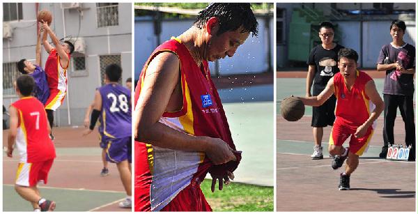赛场上,教练排兵布阵,拉拉队高声呐喊助威,队员们积极进攻,严密防守,精彩的配合,巧妙的抢断,精彩的三分给大家带来了一次又一次丰富的视觉盛宴。