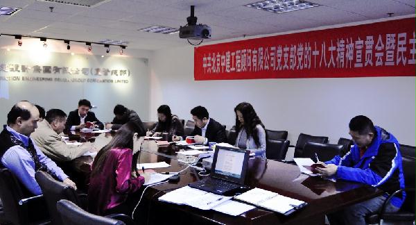 2012年11月28日,公司召开了深入学习党的十八大精神宣贯会暨民主生活会,公司在京党员参加会议,会议由金眉书记主持。