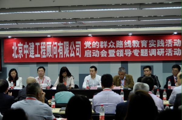 北京中建工程顾问有限公司根据中建总公司及直营总部党委总体部署,于2014年4月24日下午3时召开了党的群众路线教育实践活动启动会暨领导调研活动。中国中建设计集团执行总经理、党委副书记孙福春,第三督导组组长、直营总部副总经理、北京中建工程顾问有限公司监事赵维勇,直营总部总经理助理、人力资源管理部部长于健出席会议。会议由金眉书记主持。公司领导、各职能部门负责人、各生产单位主要负责人、群众代表等42人参加了会议。